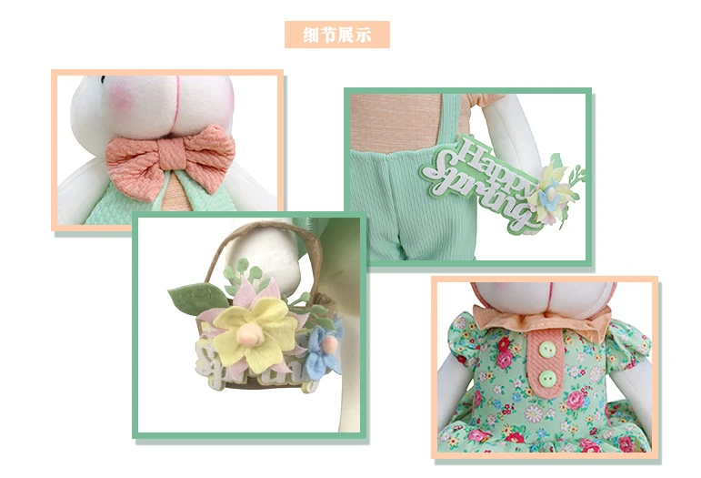 Zaves Custom Doll Maker Spring Garden Style Series Cotton Fabric Easter Cute Rabbit Toy Holding Flower Basket Home Decoration